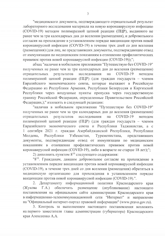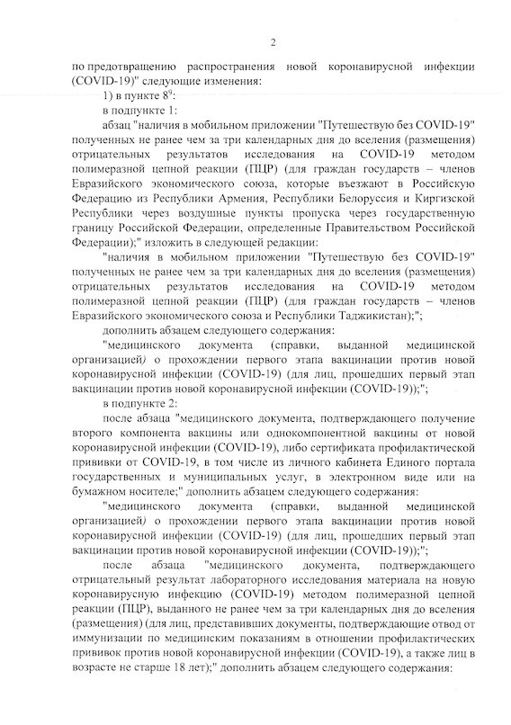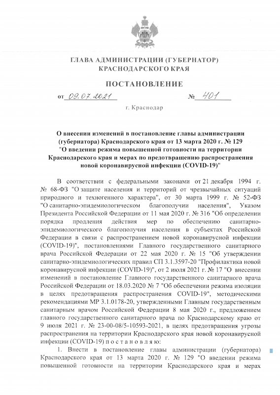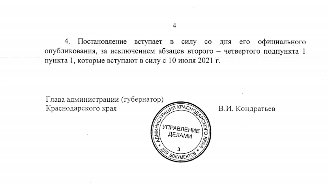 Глава Краснодарского края Вениамин Кондратьев 9 июля 2021 года внес очередные изменения в свое постановление, регламентирующее правила заселения в отели для туристов, прибывающих на отдых в Анапу и другие курорты Кубани.