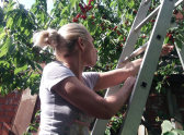 Мы нашли в Анапе целую ягодную плантацию. Семья Гороховых на улице Абрикосовой вырастила большой черешневый сад! Сорта деревьев – от ранне- до позднеспелого. От одних названий текут слюнки: Наполеон черная и Наполеон розовая, Биг Стар, колонновидная красная, крупноплодная желтая, Королева Мэри, французская черная! Сегодня подоспели первые ранние сорта – от красной до бледно-розовой. На вкус вполне съедобная. И вообще вся улица Абрикосовая, а также улицы и переулки по соседству с ней – Осенний, Летняя, Весенняя – буквально краснеют на глазах из-за ягоды. Семья Гороховых – Валентина, Галина, Виталий – занимается разведением черешни 20 лет.