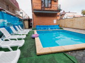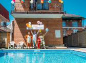 Бассейны с подогревом, взрослые и детские! Продуманная, отработанная годами программа работы с детьми «Мать и дитя», детская площадка, безопасная закрытая территория, комфортные номера категорий «Эконом», «Стандарт», «Де люкс».