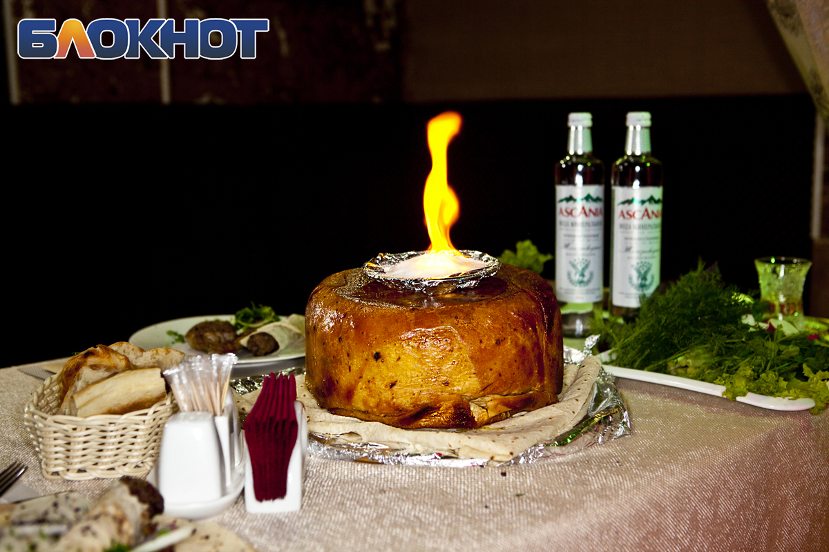 Это королевский азербайджанский плов, вариантов приготовления которого множество. Объединяет рецепты рассыпчатый нежный рис, обилие сухофруктов и самое вкусное - газмах (хрустящая корочка). Помимо сухофруктов, Ариф обычно добавляет жареные каштаны. Но в Анапе, как оказалось, каштаны - дефицит, поэтому пока без них. Шеф готовит это блюдо для большой компании. Плов очень ароматный, с насыщенной вкусовой гаммой и оригинальной огненной подачей.