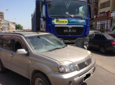 Джип "Ниссан" с номерам из 65 региона (Сахалинская область), попал под колеса большегруза "МАН".