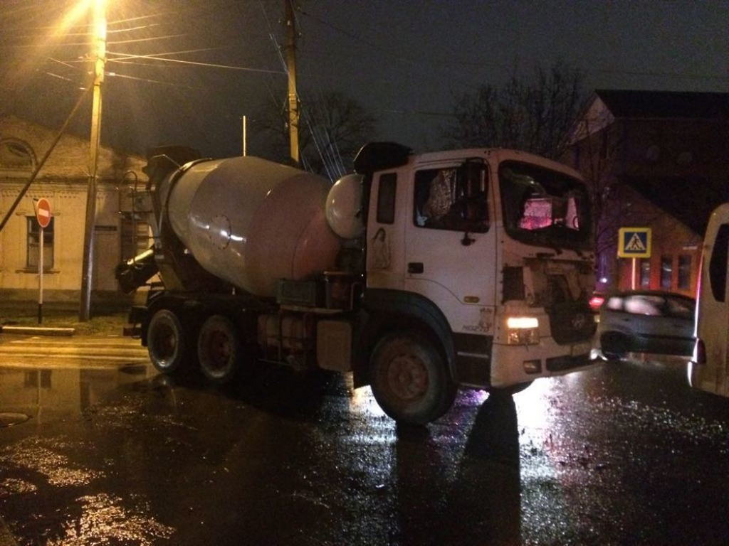 В Анапе на перекрёстке бетономешалка врезалась в автобус