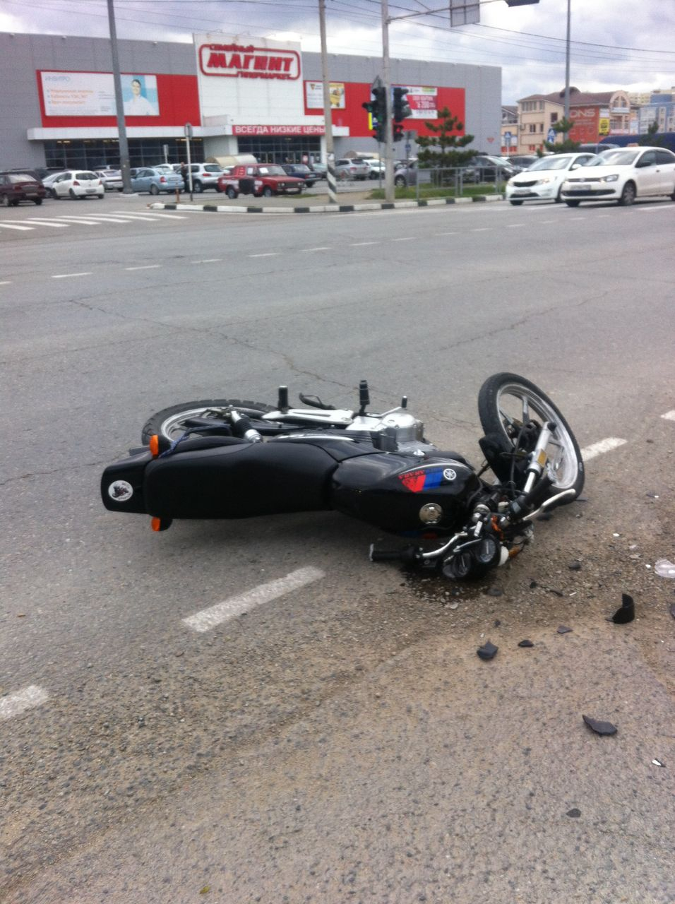 Час назад, около 16.00 на Анапском шоссе рядом с гипермаркетом «Магнит» мотоцикл «Yamaha 125 R» врезался во внедорожник «Toyota Prado».