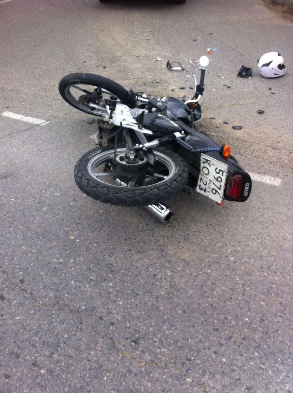От удара мотоцикл перевернулся на правый бок. Рядом с ним лежит шлем владельца и осколки частей корпуса. Обстоятельства аварии уточняются. По предварительным данным, виновником ДТП стал мотоциклист. По поводу пострадавших информации пока нет.